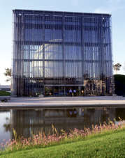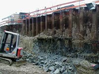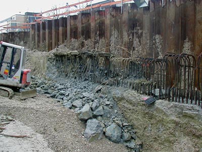 Anschluß Pfosten-Riegel-Fassade an MW; Gabionenwand;